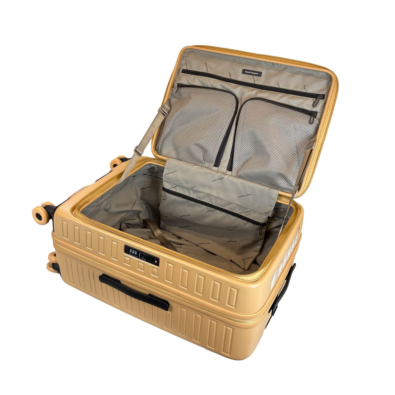 Meet the Hush Puppies 69-4039, the brand’s first top-opening luggage, designed to make packing, accessing, and organizing easier than ever. Crafted with a 100% polycarbonate shell, it combines a sleek design with robust durability, ready to handle the demands of modern travel.