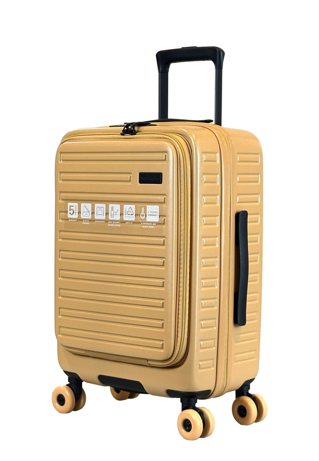 The innovative front-opening design offers quick access on the go, making this luggage as practical as it is stylish.Equipped with a built-in hanging hook, perfect for organizing travel accessories or hanging essentials in a hotel closet. And with a 5-year warranty, you can travel with confidence, knowing you're backed by quality you can trust.